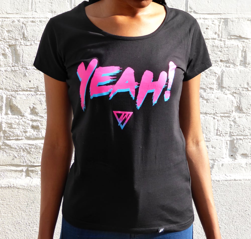 - 'YEAH!' DESIGN SCREENPRINTED IN VIBRANT COLOURS